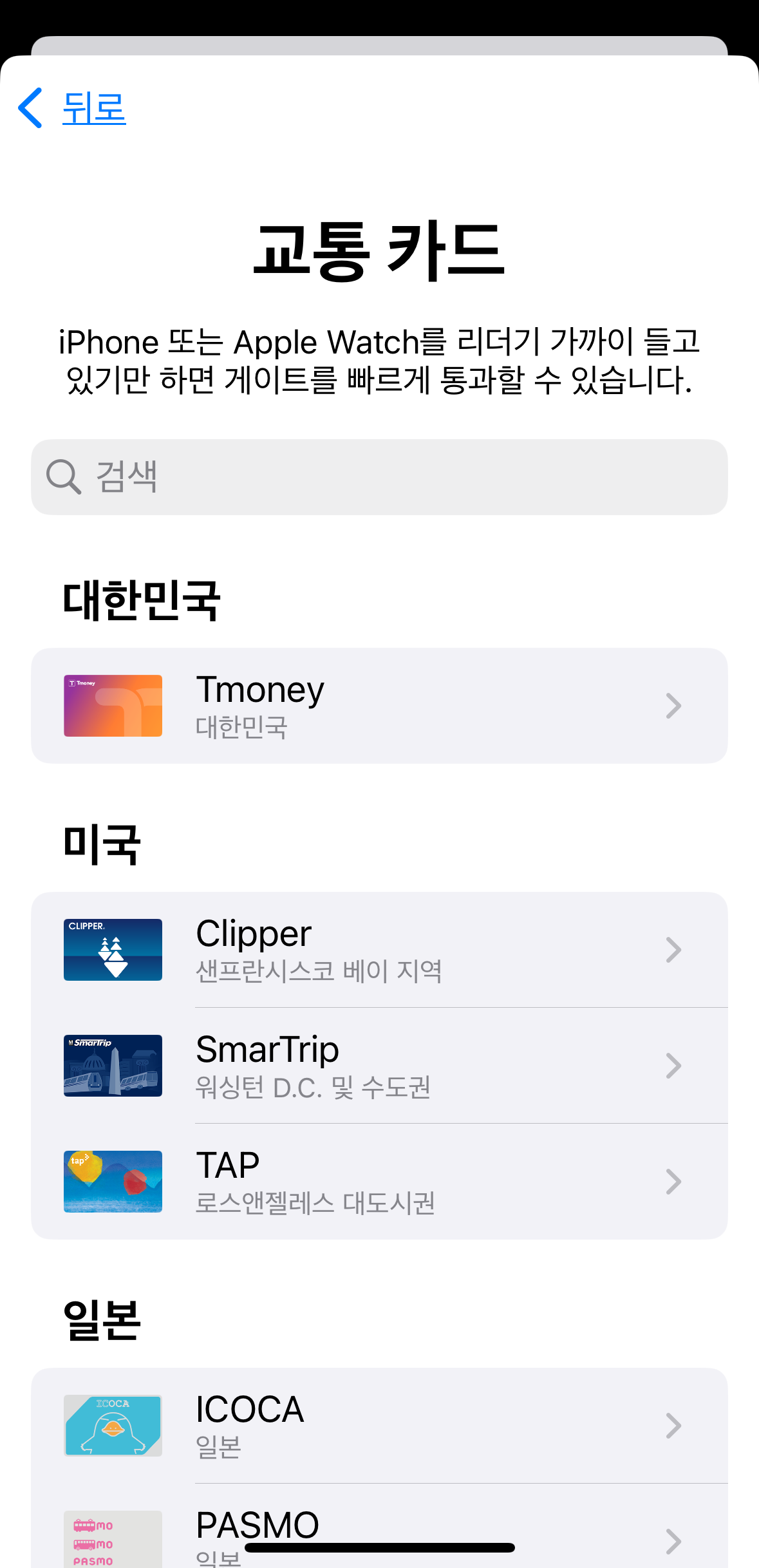 같은 애플 페이라고 해도 해외 카드는 막혀있다거나 하는 식으로요...